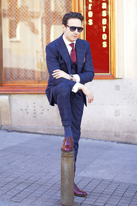 Một đôi Captoe màu Tan phối cùng Navy suit cũng là một lựa chọn không quá an toàn