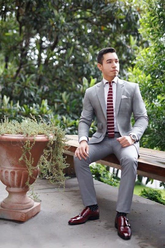 Một đôi Oxford màu Burgundy phối cùng Grey suit