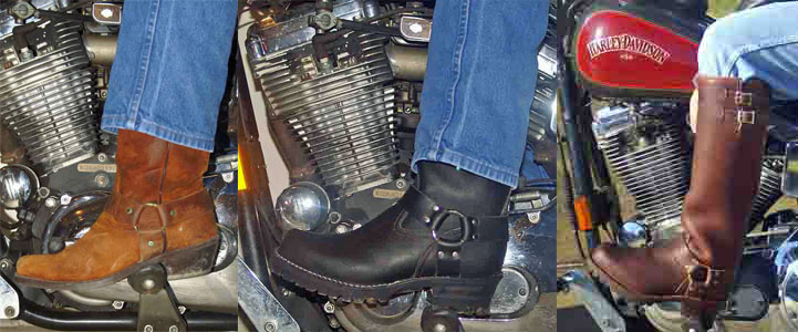 Giày Harness Boots được thiết kế cho những người đi xe máy, bảo vệ chân khỏi sức nóng của ống pô, máy và các chấn thương trong trường hợp xảy ra tai nạn. Harness boots có bốn dây da và hai vòng kim loại tròn không thể điều chỉnh được: một dây đeo phía trên bề mặt giày, một đường dây quấn quanh phía sau chân và hai dây từ đế giày lên, toàn bộ 4 dây sẽ nối với nhau tại 2 vòng tròn kim loại nằm 2 bên mắt cá chân. Thông thường, những đôi giày này có một sợi dây kéo ở hông từ trên xuống dưới gần đế để dễ dàng mang. Đế và gót thường được làm bằng cao su cứng hoặc da. Giày harness boots nguyên bản khá phổ biến trong thế kỷ 19 và cho đến những năm 1960 thì được thêm vào 2 miếng kim loại và dây da tạo thành một phiên bản mới hơn và nhanh chóng trở thành một mẫu giày classic.